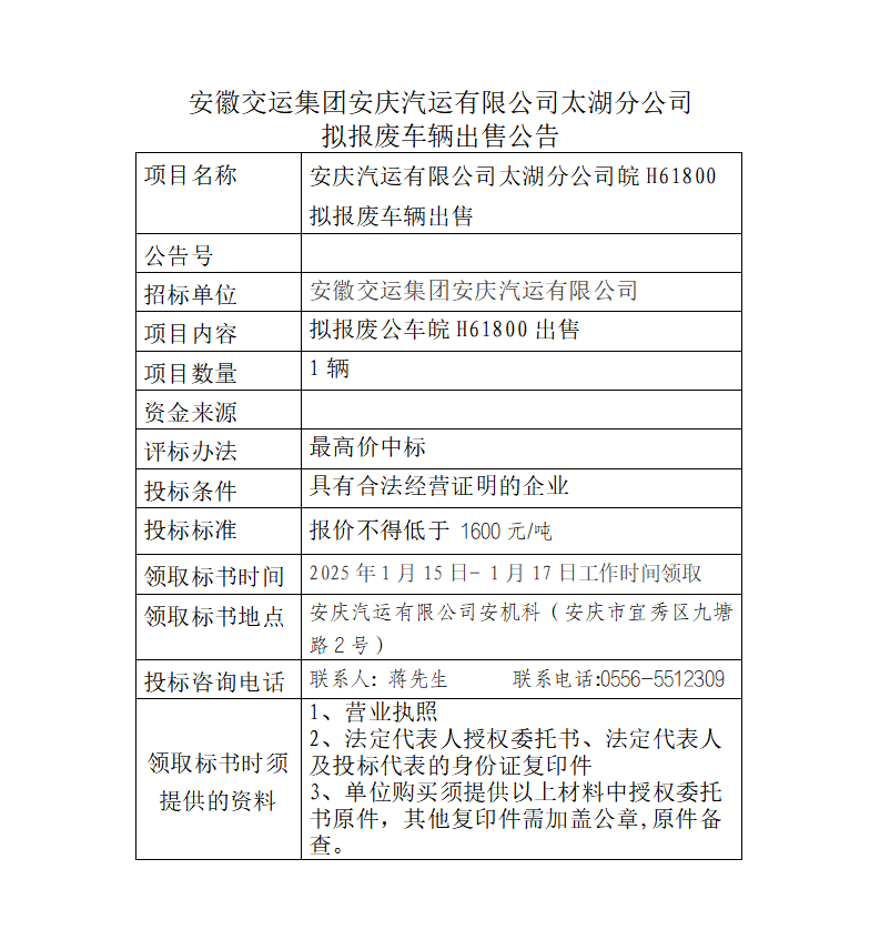 太湖分公司擬報廢車輛出售公告
