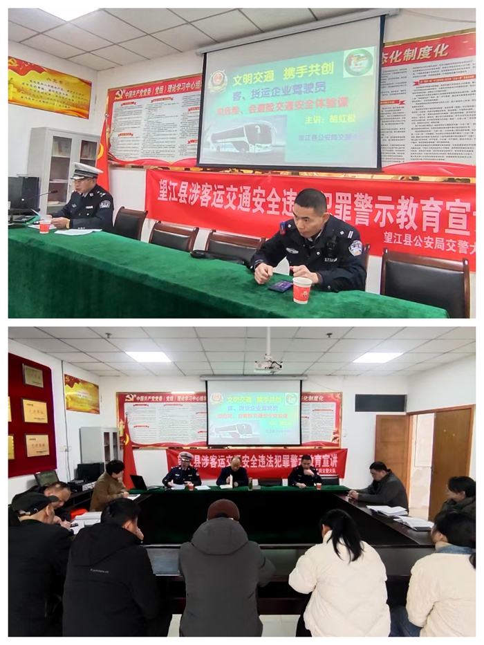 為深入貫徹落實(shí)道路交通安全專項整治行動部署要求,切實(shí)強(qiáng)化客運(yùn)企業(yè)源頭安全管理,3月13日上午,望江縣交警宣教部門聯(lián)合望江客運(yùn)分公司開展涉客運(yùn)交通安全違法犯罪警示教育宣講活動,分公司安全管理人員積極參與。