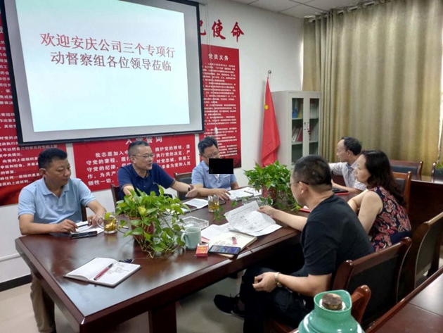 督查組到懷寧分公司后,召開了分公司班子成員參加的工作座談會。分公司黨政負責(zé)人及相關(guān)負責(zé)人匯報了“三個專項”行動和清單化管理落實情況,督查組聽取匯報后并對相關(guān)對應(yīng)基礎(chǔ)資料進行了查閱。