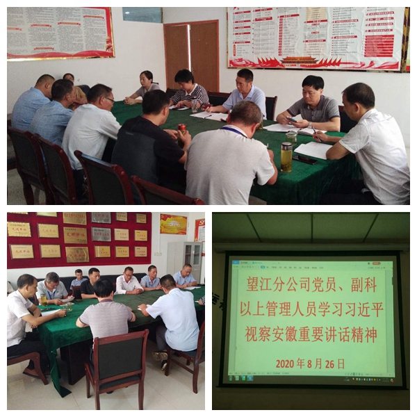 (望江分公司訊 王海峰):8月26日下午,望江分公司組織黨員及副科以上管理人員集體學習《習近平視察安徽和在扎實推進長三角一體化發(fā)展座談會上的重要講話精神》。集體學習活動由分公司支部書記張佛應主持。分公司經理何德松領學了講話精神。