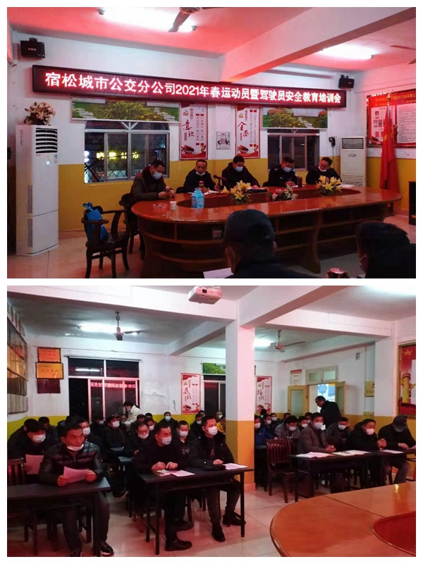 2021年1月27日晚,宿松城市公交分公司召開了2021年春運動員暨駕駛員安全教育培訓會,縣交通運管局、交警隊相關領導應邀蒞會指導,分公司各部門負責人及全體駕駛員參加了會議,會議由分公司經(jīng)理劉天旺主持。