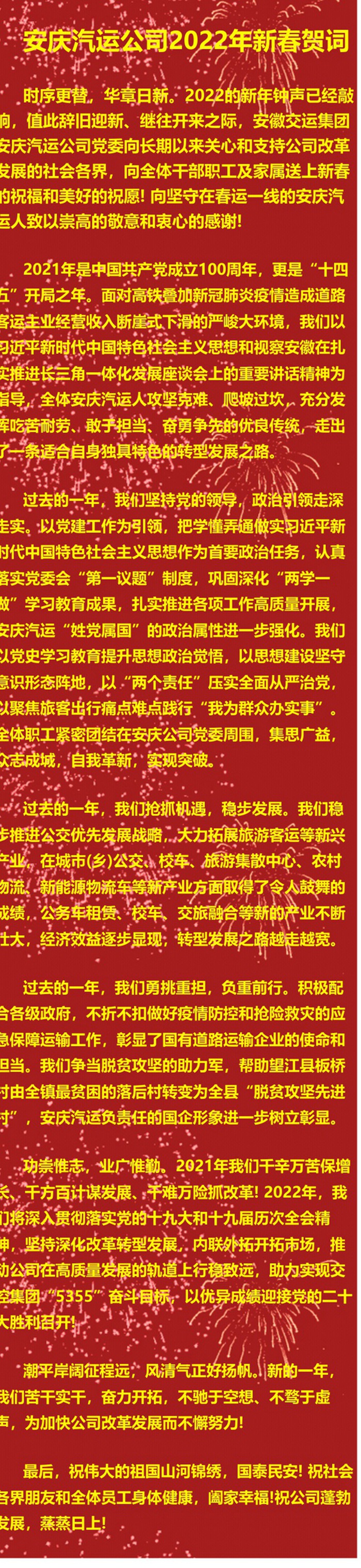 安慶汽運公司2022年新春賀詞