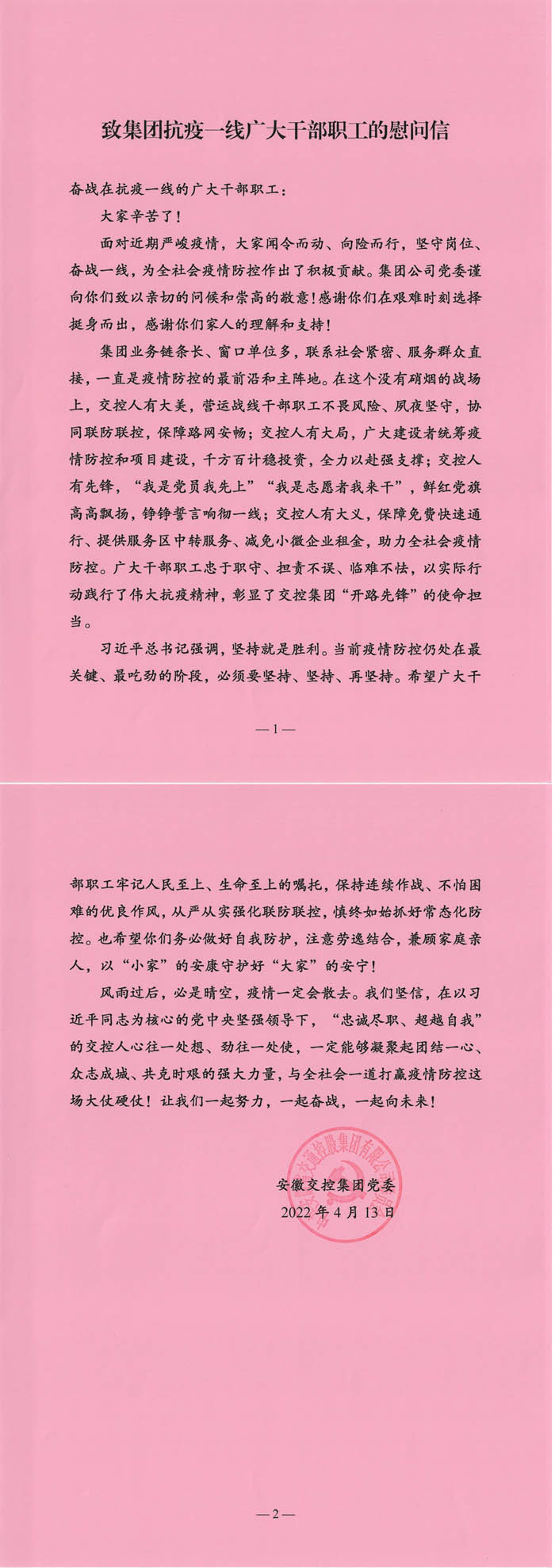 致集團(tuán)抗疫一線廣大干部職工的慰問信